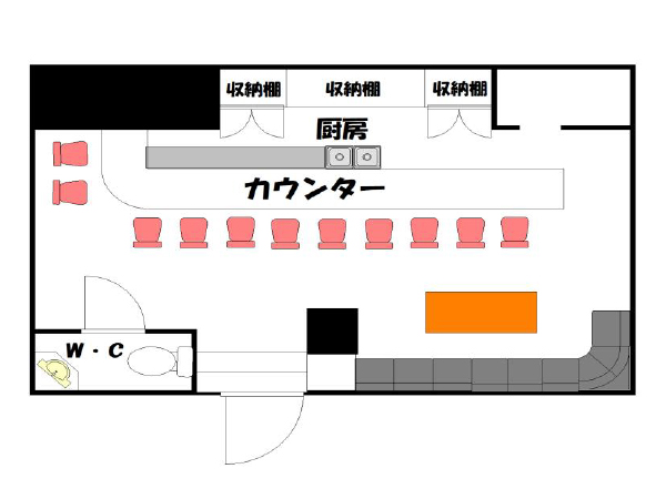 | 物件階層 | 6階建3階部分 | 席数 | カウンター:10席 ボックス:6-8席 合計16席 |